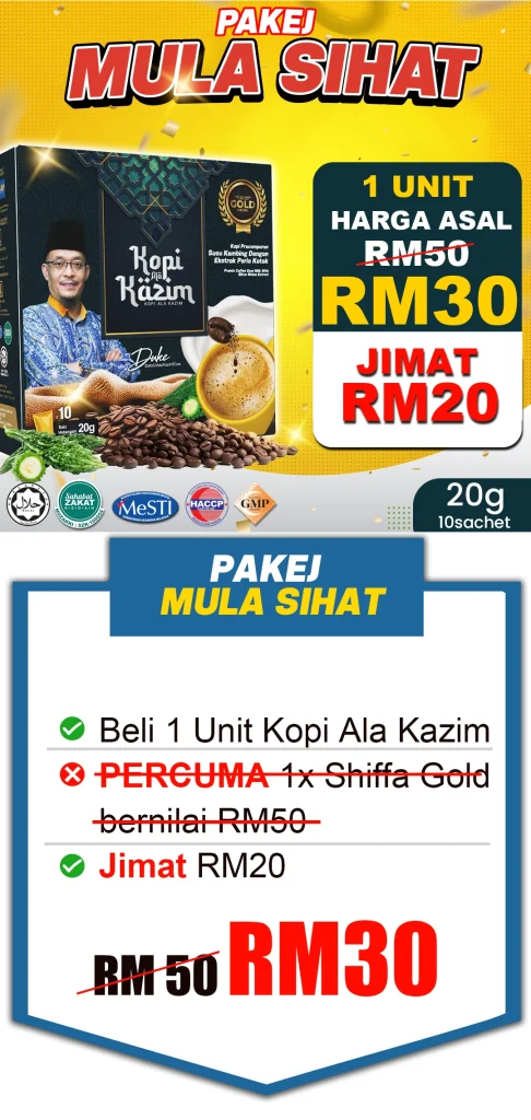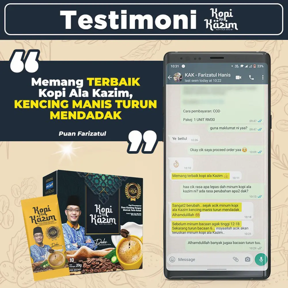 (Penafian: Tindakbalas dan kesan baik Kopi Ala Kazim mungkin berbeza bagi setiap individu>)