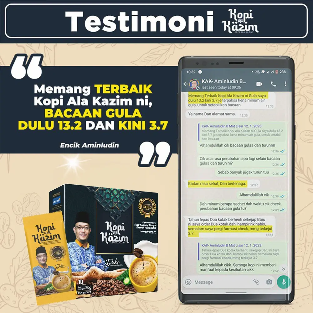 Anda tahu KOPI ALA KAZIM adalah kopi pracampuran yang diformulasi berasaskan kajian saintifik dan merupakan pilihan terbaik untuk bantu Anda kawal gula secara selamat